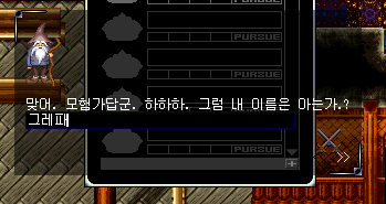 가서 그레파에게 말을 걸면 대화라는 선택지를 볼 수 있다.