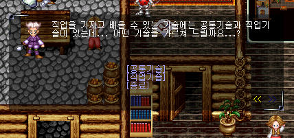 말을 걸어보니 공통기술과 직업기술이 있다고 한다. 우리는 더블어택을 배우러 왔으니 공통 기술을 클릭하도록 하자.