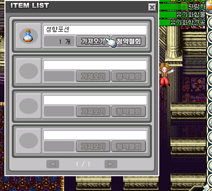 구매한 성향포션이 있는 것을 확인 할 수 있다.