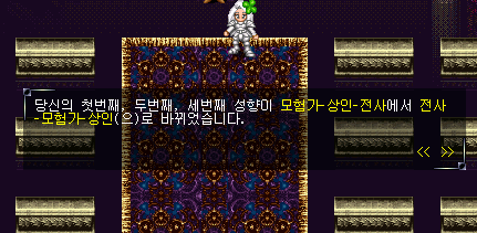 그리고 성향 포인트를 투자하면 자신의 현재 성향이 어떻게 변경 되었는지 알 수 있다. 위의 사진은 성향 포인트의 투자에 따라 우선도가 변경되어 모험가-상인-전사 성향에서 전사-모험가-상인 성향으로 순위가 변경된 것을 확인 할 수 있다.