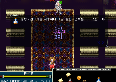 이 성향포션을 더블클릭해서 사용하면 원하는 성향포인트를 1만큼 내릴 수 있게 된다.