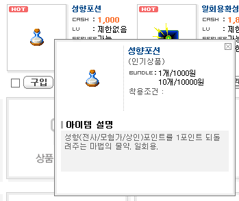 캐시샵 화면이 떴다면 성향포션을 검색하도록 하자.
