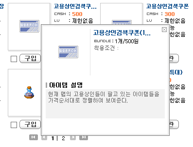 원하는 아이템이 있다면 일일이 돌아다니면서 고용상인을 클릭하고 다니지말고 고용상인검색쿠폰을 사용해보도록 하자.