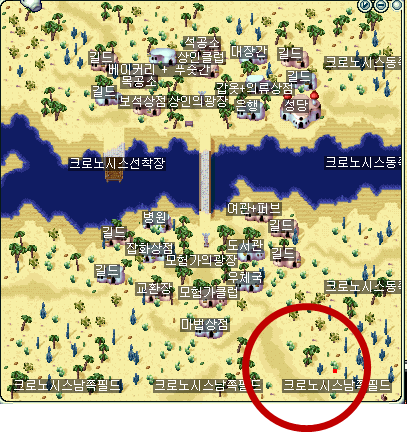 크로노시스에 도착했다면 빨간 동그라미가 쳐진 곳으로 가도록 하자. (남쪽필드)
