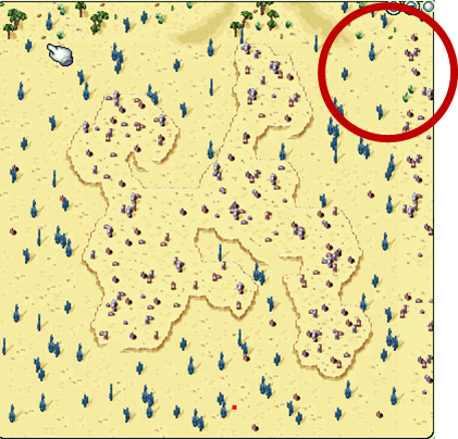 자, 여기가 바로 우리가 캑터스가시를 구할 수 있는 곳이다. 빨간 동그라미가 있는 언덕으로 가도록 하자. 캑터스가시는 캑터스(로드)를 잡고 획득할 수 있는데 그 드롭율이 상당히 낮게 느껴진다.