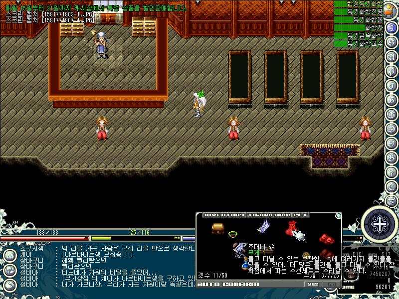 수선 세트를 클릭하면 위 그림과 같이 화살표 모양이 나오면서 고칠 아이템을 클릭할 수 있다.