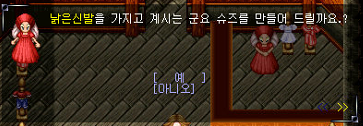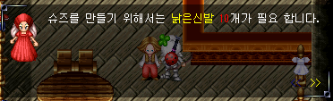 이렇게 낡은 신발을 10개 획득하였다면 대화를 나눠보자.