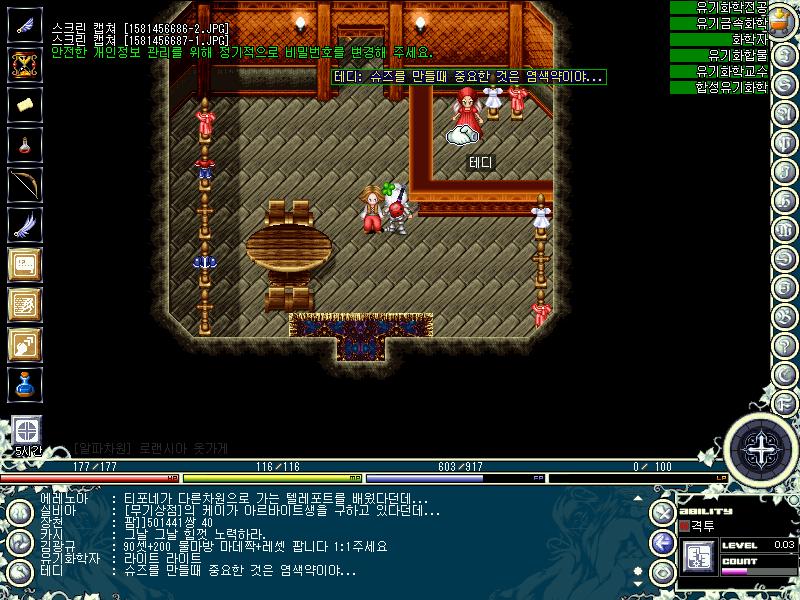 로랜시아 의류 상점에 있는 테디가 신발과 바지를 만들어 준다고 한다. 그 솜씨가 얼마나 대단한지 한번 알아보도록 하자. (옛날에 게임을 즐길 때는 참 많이 이용했던 컨텐츠인데 요즘은 유저들에게 잊혀진 듯 하다.)