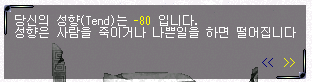 네크로멘서 사면을 하고 나면 성향(tend)은 -80이 된다. (사면이벤트로 사람이 될 경우 성향(tend)은 -50이다.)