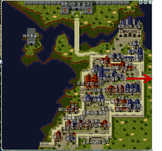 재료를 다 구했다면 화살표 방향의 로랜시아 동쪽 사냥터로 나가도록 하자.