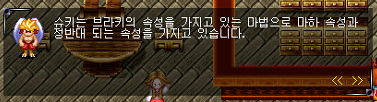 슈키는 브라키 속성을 갖고 있는 마법으로 마하 속성과 정반대 되는 속성을 갖고 있다고 한다.